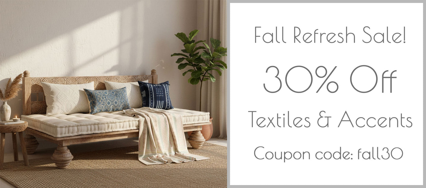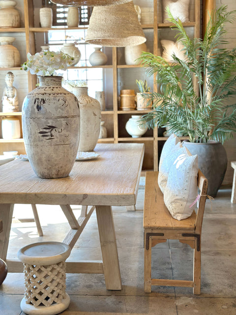 We strive to present an engaging setting at our De-cor showroom in Pasadena CA and now we are delighted to share our intricate collection of antiques, architectural elements and original textiles from all around the globe.