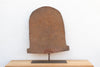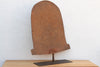 This piece is all about mass and presence. While some currency blades are tall and slender, this one is broad and formidable, measuring 30 inches across. It weighs a substantial 38 pounds, giving it a density that you can feel even just looking at it. The shape is reminiscent of a massive anchor or bell, featuring a beautifully rounded top arch that contrasts with the rough, oxidized texture of the forged iron. The patina here is exceptional—a deep, matte rust that absorbs light, making it a powerful focal point for any room that needs a touch of "soul" and history.