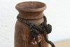 Originally used in village homes for storing milk, ghee, or grains, this antique wooden pot has survived generations of daily life. The wood has absorbed decades of touch and use, resulting in a deep, lustrous brown patina that no modern stain can replicate. This antique wood vessel features a sturdy, tapered silhouette and a distinctive braided rope tie around the neck. The contrast between the rough, fibrous rope and the smooth, worn wood is visually striking. Imperfections—like small historic repairs, natural fissures, or asymmetry—are not flaws; they are the fingerprints of its past life.