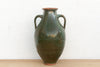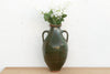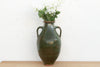 A striking piece of Provencal history, this tall earthenware jar was originally utilitarian, designed to store precious olive oil or water in a cool cellar. It is defined by its elegant amphora shape, sturdy twin handles, and incredible glaze—a deep, lustrous forest green that varies in intensity across the surface. The glaze stops just short of the rim and base, revealing the raw terracotta clay underneath, a hallmark of authentic rustic pottery. It will look incredible perched on a large kitchen island or a deep sideboard, where its glossy green surface adds a splash of sophisticated color to neutral interiors.