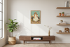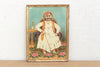 A captivating portrait that bridges two worlds, this antique painting depicts a Rajput nobleman or Maharaja seated in a European-style upholstered chair. He is dressed in traditional white finery with a saffron sash and a jeweled turban, holding a walking stick—a symbol of gentlemanly status in the late 19th century. Notably, a golden halo glows behind his head, a traditional artistic convention used to signify his supreme power or semi-divine status. The composition, featuring pink roses at his feet and a vase on a side table, reflects the aesthetic of the British Raj era, where Indian courtly splendor met Victorian formality.