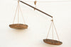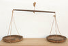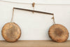 A relic of ancient commerce, this hanging scale evokes the bustle of a village market day. Hand-crafted from humble materials, it features a central wooden peg that suspends two shallow pans made of leather. Originally used to weigh dry goods like grain or spices against a counterweight, today it serves as a purely decorative object. The piece has lost its functional mechanism, leaving behind a sculpture of balance and rustic simplicity. The textures—frayed rope, smooth wood, and weathered leather—tell a story of decades of daily use.