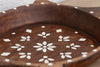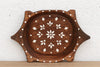 This vintage bowl is a beautiful conversation between the past and the present. The vessel itself is a vintage, hand-carved wooden bowl, carrying decades of history in its dark, weathered patina and rustic "turtle” silhouette. To give this historic piece a new life, it has been recently hand-painted by artisans with intricate white geometric and floral motifs. The design is reminiscent of traditional Indian MOP Inlay or Tikuli art, creating a stunning high-contrast look against the moody, aged wood. It captures the soul of an antique with the fresh energy of a modern art piece.