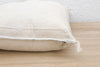Introduce a touch of delicate artistry to your home with our handcrafted 18-inch square cactus silk pillow cover. Woven from the durable and subtly textured fibers of the Saharan aloe vera cactus, this piece showcases the enduring Berber tradition of textile artistry in light tones, reminiscent of sun-bleached hues. The soft, light background provides a gentle and inviting backdrop for the crisp white tribal embroidery that adorns its surface. Each unique motif is meticulously hand-stitched by skilled Moroccan artisans, reflecting their cultural heritage and exceptional craftsmanship in natural colors. This 18-inch square white Moroccan pillow cover is a versatile accent that will serve beautifully as a stylish throw pillow on a chair or as part of a layered pillow arrangement on a sofa or bed, contributing a touch of serene global charm. Please note that this listing is for the pillow cover only.