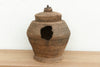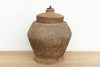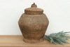 A beautiful example of finding beauty in imperfection, this antique lidded basket features an exceptionally tight, structural weave and a graceful, footed silhouette. However, its most defining feature is the large, jagged burn mark on one side. In the philosophy of Wabi-Sabi, marks of wear and damage are celebrated as part of an object's life cycle rather than concealed. From the "good" side, it is a classic, elegant storage vessel; from the other, it is a raw piece of history that invites curiosity about its past life. Place it in a corner or against a wall with the unblemished side facing out. It functions perfectly as a tall vessel for dried pampas grass or branches.