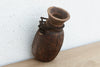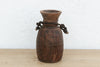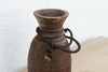 Originally used in village homes for storing milk, ghee, or grains, this antique wooden pot has survived generations of daily life. The wood has absorbed decades of touch and use, resulting in a deep, lustrous brown patina that no modern stain can replicate. This antique wood vessel features a sturdy, tapered silhouette and a distinctive braided rope tie around the neck. The contrast between the rough, fibrous rope and the smooth, worn wood is visually striking. Imperfections—like small historic repairs, natural fissures, or asymmetry—are not flaws; they are the fingerprints of its past life.