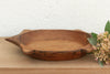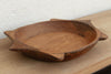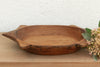 The sculptural form of this vintage bowl takes center stage. Carved from a single piece of solid hardwood, it features a distinct "Turtle" or "Star" silhouette with protruding geometric handles. This shape is a rare find among traditional dough bowls, suggesting it may have once held a specific ceremonial or functional purpose in a village kitchen. The wood wears its history openly, displaying a warm, honey-brown to deep espresso patina earned over decades of use. The hand-hewn tool marks are visible on the interior, adding a layer of texture that machine-made items simply cannot replicate.