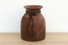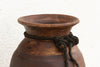 Originally used in village homes for storing milk, ghee, or grains, this antique wooden pot has survived generations of daily life. The wood has absorbed decades of touch and use, resulting in a deep, lustrous brown patina that no modern stain can replicate. This antique wood vessel features a sturdy, tapered silhouette and a distinctive braided rope tie around the neck. The contrast between the rough, fibrous rope and the smooth, worn wood is visually striking. Imperfections—like small historic repairs, natural fissures, or asymmetry—are not flaws; they are the fingerprints of its past life.