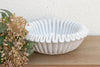 Carved from a single block of pristine white marble, the vessel has been meticulously hand-chiseled to create a continuous "scalloped" edge that mimics the gentle ripples of a seashell or the pleats of heavy silk. What makes this marble bowl extraordinary is the softness of the stone and the sculptural form. The marble features a matte, honed finish (velvet to the touch, rather than shiny), which absorbs light and allows the deep fluting to create dramatic, shifting shadows throughout the day.