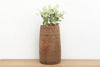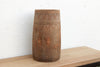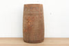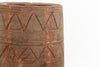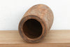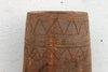 A powerful piece of primitive craftsmanship, this tall cylindrical vessel was hewn from a single solid log. Originating from the Naga tribes of Northeast India, it was traditionally used as a grain measure for rice or a storage container for brewing. The exterior features hand-carved bands of geometric zigzag motifs, which often symbolize water, mountains, or protection in tribal iconography. The wood has an "oxidized" finish—a raw, matte, sun-bleached patina. At 20 inches tall, it is the perfect size to sit on the floor next to a fireplace or a reading chair. It serves as an incredible dry vase for tall, structural botanicals like dried branches.