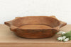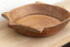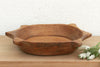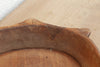 The sculptural form of this vintage bowl takes center stage. Carved from a single piece of solid hardwood, it features a distinct "Turtle" or "Star" silhouette with protruding geometric handles. This shape is a rare find among traditional dough bowls, suggesting it may have once held a specific ceremonial or functional purpose in a village kitchen. The wood wears its history openly, displaying a warm, honey-brown to deep espresso patina earned over decades of use. The hand-hewn tool marks are visible on the interior, adding a layer of texture that machine-made items simply cannot replicate.