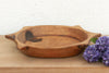 The sculptural form of this vintage bowl takes center stage. Carved from a single piece of solid hardwood, it features a distinct "Turtle" or "Star" silhouette with protruding geometric handles. This shape is a rare find among traditional dough bowls, suggesting it may have once held a specific ceremonial or functional purpose in a village kitchen. The wood wears its history openly, displaying a warm, honey-brown to deep espresso patina earned over decades of use. The hand-hewn tool marks are visible on the interior, adding a layer of texture that machine-made items simply cannot replicate.
