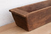 Carved from a single, massive log of hardwood, this antique wooden trough was likely originally used in a village setting for feeding livestock or kneading large batches of dough. It is defined by its "heft"—thick walls, rough-hewn edges, and a sturdy, block-like silhouette that feels nearly indestructible.