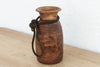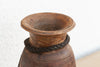 Originally used in village homes for storing milk, ghee, or grains, this antique wooden pot has survived generations of daily life. The wood has absorbed decades of touch and use, resulting in a deep, lustrous brown patina that no modern stain can replicate. This antique wood vessel features a sturdy, tapered silhouette and a distinctive braided rope tie around the neck. The contrast between the rough, fibrous rope and the smooth, worn wood is visually striking. Imperfections—like small historic repairs, natural fissures, or asymmetry—are not flaws; they are the fingerprints of its past life.