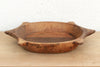 The sculptural form of this vintage bowl takes center stage. Carved from a single piece of solid hardwood, it features a distinct "Turtle" or "Star" silhouette with protruding geometric handles. This shape is a rare find among traditional dough bowls, suggesting it may have once held a specific ceremonial or functional purpose in a village kitchen. The wood wears its history openly, displaying a warm, honey-brown to deep espresso patina earned over decades of use. The hand-hewn tool marks are visible on the interior, adding a layer of texture that machine-made items simply cannot replicate.