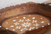 This vintage bowl is a beautiful conversation between the past and the present. The vessel itself is a vintage, hand-carved wooden bowl, carrying decades of history in its dark, weathered patina and rustic "turtle” silhouette. To give this historic piece a new life, it has been recently hand-painted by artisans with intricate white geometric and floral motifs. The design is reminiscent of traditional Indian MOP Inlay or Tikuli art, creating a stunning high-contrast look against the moody, aged wood. It captures the soul of an antique with the fresh energy of a modern art piece.
