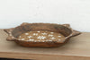 This vintage bowl is a beautiful conversation between the past and the present. The vessel itself is a vintage, hand-carved wooden bowl, carrying decades of history in its dark, weathered patina and rustic "turtle” silhouette. To give this historic piece a new life, it has been recently hand-painted by artisans with intricate white geometric and floral motifs. The design is reminiscent of traditional Indian MOP Inlay or Tikuli art, creating a stunning high-contrast look against the moody, aged wood. It captures the soul of an antique with the fresh energy of a modern art piece.