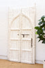 Bring a piece of history and refined artistry to your home with this magnificent pair of antique Indian doors. Dating to the early 19th century, this impressive piece of architectural history was originally used as entrance doors to important buildings such as temples, palaces, and forts. Meticulously crafted from solid teak panels and heavy, hand-wrought iron hardware, its enduring beauty is a testament to the artisan's skill. The doors feature a striking Moorish arch design, accented with prominent nail-heads and a latch pull handle, all of which speak of its grandeur.