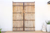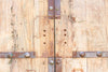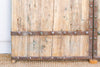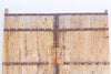 Step into a legacy of craftsmanship and monumental grandeur with this magnificent pair of antique doors. Standing at an impressive 103 inches high and a substantial 78 inches wide, these reclaimed architectural elements are a powerful testament to the robust construction of a bygone era. Likely originating from Northern China, Mongolia, or the Himalayan region (such as Nepal), these doors were built to withstand harsh climates and provide immense security. They are constructed from wide, rustic wood planks held together by a series of prominent horizontal and vertical iron straps, secured with large, expressive rivets. The dark, hand-forged metalwork provides a striking, honest contrast to the natural, weathered finish of the wood, which bears a beautiful, timeworn patina that speaks volumes about its journey through time and its previous life as a grand entrance. A subtle detail that adds to its history is the missing iron hardware in the center, a ghost of a lock or handle that once secured the doors, now a testament to their long and storied past.