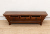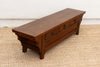 This antique low altar table includes three drawers, offering subtle storage while maintaining its clean lines. This versatile piece can serve as a unique coffee table, a low console, or a distinctive display surface, bringing a touch of understated elegance to your home.