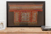 Add a touch of cultural richness and intricate artistry to your home with this framed Hmong/Miao textile fragment. Measuring 32 inches wide and 21 inches high, this piece features a detailed woven or embroidered design, originating from the Hmong or Miao people of Southeast Asia and China. The intricate geometric patterns, vibrant colors, and detailed embroidery are characteristic of Hmong/Miao textiles, often carrying symbolic meanings and reflecting the cultural heritage of these communities. The hand-crafted nature of the textile highlights the skill and artistry of the weaver or embroiderer. This framed textile fragment, a section of a baby carrier, would make a unique decorative accent, adding a touch of global inspiration and historical significance to any room. It can be displayed as a standalone piece or incorporated into a collection of ethnic textiles or folk art. Its original use was as part of a larger textile piece, serving a functional and cultural purpose within the Hmong/Miao community, specifically as a baby carrier.