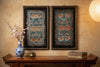 Adorn your space with the exquisite symmetry and artistry of this pair of framed Chinese silk embroidered panels. Measuring 16 inches wide and 27 inches high each, these matching pieces showcase detailed designs featuring vibrant floral motifs and possibly birds, likely from regions renowned for their silk work, such as Suzhou or Canton. The fine silk threads, in deep blues and reds, create a visually captivating display, highlighting the skill and artistry of the Chinese embroiderer. The floral motifs, such as peonies (symbolizing wealth and prosperity) and the possible inclusion of birds (representing good fortune or marital bliss), carry symbolic meanings within Chinese culture. This pair of framed Chinese silk embroidered panels would make a striking decorative accent, adding a touch of global inspiration and historical significance to any room. They can be displayed as a matching set, creating a sense of balance and harmony.