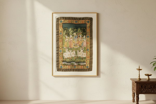 Sacred Pasture, Framed Vintage Pichwai Painting (Trade)