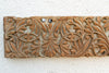 The wood finish is a raw, matte teak that has developed a deep, oxidized patina over many decades. It serves as a stunning standalone sculptural element, especially in a Japandi or Modern Minimalist space where its aged texture can provide a grounded, organic contrast to clean lines. Whether utilized as a decorative shelf-top accent or mounted as a structural-style header, this piece brings the quiet authority of a 19th-century Haveli into the modern home.