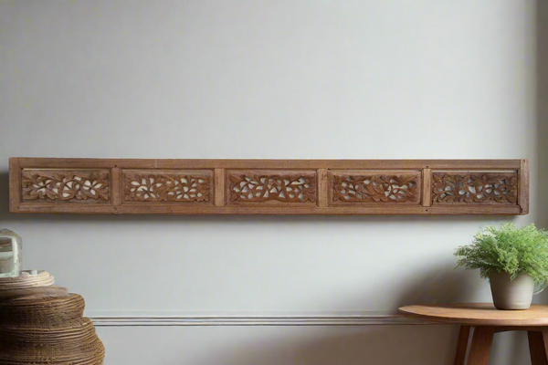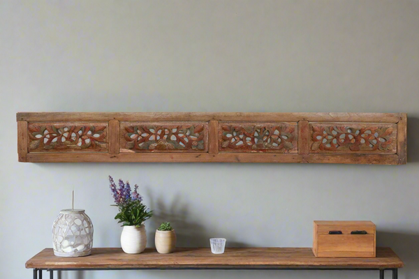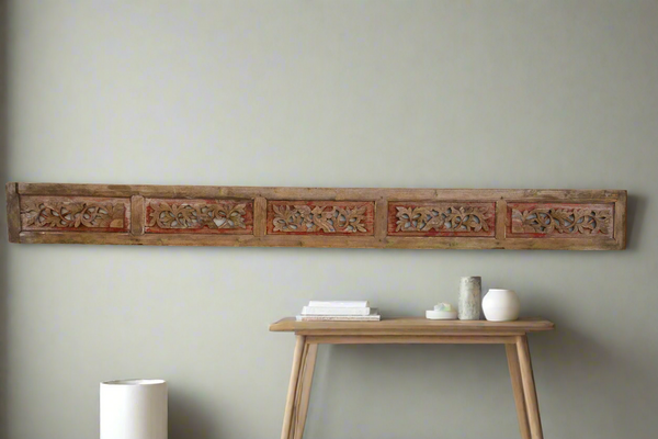 1840's Indian Pondicherry Floral & Elephant Carved Beam