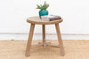 This small reclaimed side table Its perfect height and round top make it a unique and charming nightstand in a bedroom. Or nestle this lovely table next to a sofa or armchair to provide a stylish surface for drinks, a lamp, or decorative accents.