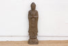Expertly hand-carved from solid stone, this figure showcases the skillful artistry of its creator. The Buddha is depicted in a graceful standing pose, with hands clasped in a gesture of prayer or devotion, a pose that radiates calm and a gentle presence. The graceful folds of the robes, the serene expression on the face, and the iconic ushnisha atop the head are all meticulously rendered. The statue rests upon a beautifully carved lotus base, a symbol of purity and enlightenment in Buddhist tradition. The natural variations and textures inherent in hand-carved stone add to the unique character and timeless appeal of this piece.