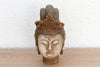 Expertly hand-carved from solid wood, this figure showcases the skillful artistry of its creator. The Buddha is depicted with a serene expression, with an elaborate headdress. The painted finish, with its soft tones of red, blue, and white, reveals the natural wood beneath, giving the piece a rich, authentic history that can only be acquired over time. The face and head are arguably the most expressive and spiritually powerful part of the sculpture. They carry the serene, compassionate, and meditative essence of the Buddha. Displaying just the head allows this profound expression to be the sole focal point, unencumbered by the full body.