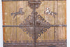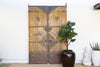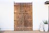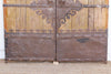 Step into a legacy of craftsmanship and monumental grandeur with this magnificent pair of antique doors. Standing at an impressive 102 inches high and a substantial 78 inches wide, these reclaimed architectural elements are a powerful testament to the robust construction and intricate metalwork of a bygone era. Likely originating from Northern China, Mongolia, or the Himalayan region (such as Nepal), these doors were built to withstand harsh climates and provide immense security. They are constructed from wood planks, but the visual focus is on the extensive and highly decorative iron/metalwork that covers their entire surface. Horizontal and vertical straps, secured with countless prominent rivets, frame a series of highly detailed medallions and decorative plates.
