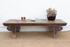 This distinguished table, a classic from the Ming Dynasty style, features a sturdy, rectilinear form. Its most striking features are the robust legs, connected by graceful hand-carved scrolling brackets. These decorative elements, reminiscent of cloud or Ruyi motifs, are a hallmark of traditional Chinese furniture, adding a touch of sophisticated artistry to the table's simple silhouette. The wood boasts a stunning two-toned patina, with a lighter, sun-bleached top that beautifully contrasts with the darker, weathered finish of the base and legs. This natural aging speaks volumes about its history and journey through time.