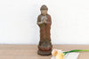 Discover the serene beauty of a peaceful, contemplative moment captured in wood with this charming petite carved and painted figure. Measuring a delicate 12 inches high, this piece offers a striking presence in a small, versatile form.