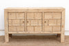 The rich, natural grain of the elm—a wood prized for its strength and expressive texture—is beautifully highlighted by its bleached patina. The three panel doors, with their subtle geometric relief, speak to a tradition of understated elegance. This piece stands as a quiet tribute to the artisans who built it, carrying its heritage with a powerful, grounded presence.
