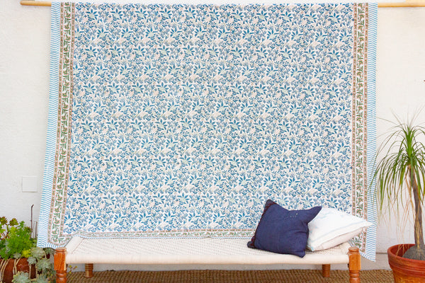 Azure Vine, Hand Blockprint Cotton Coverlet