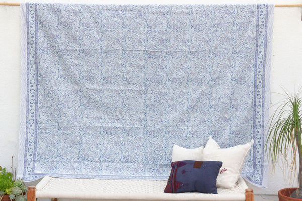 Blue & White Floral, Hand Blockprint Cotton Coverlet