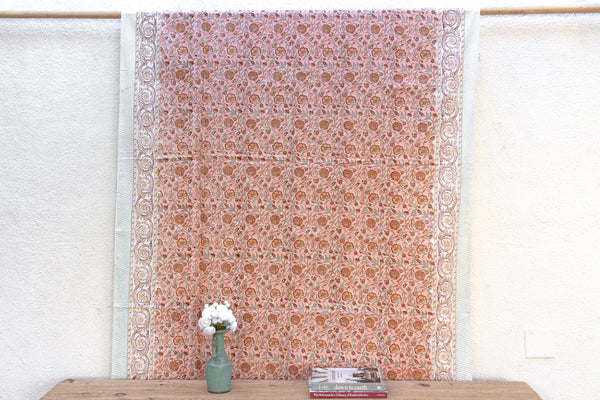 Peachy Floral, Hand Blockprint Cotton Coverlet