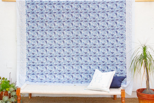 Indigo Lotus, Hand Blockprint Cotton Coverlet