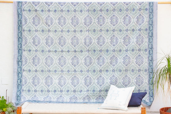 Palace Scroll, Hand Blockprint Cotton Coverlet
