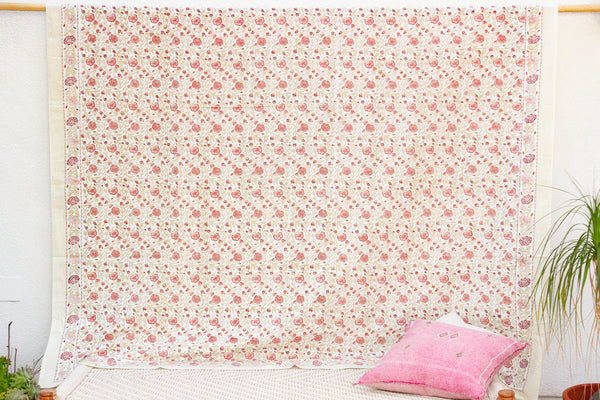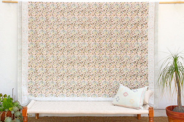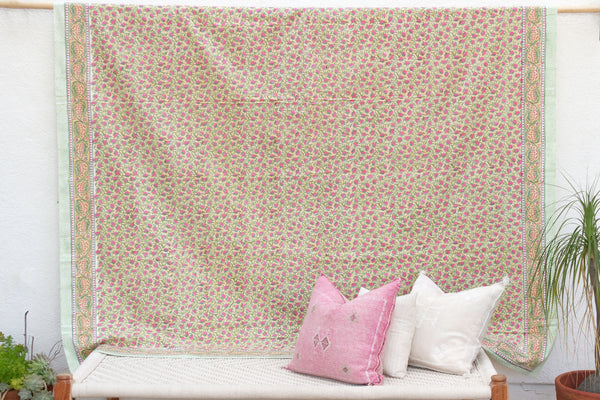 Rajastan Rose Garden, Hand Blockprint Cotton Coverlet