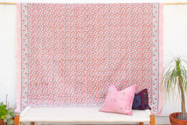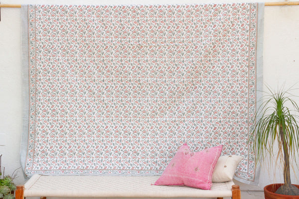 Coral Mist, Hand Blockprint Cotton Coverlet
