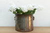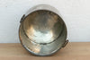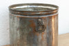 This vessel is all about that coveted "perfectly imperfect" surface. This antique pot features a historic tinned finish (a silvery coating applied to copper). Over decades of use, the silver has worn down to reveal the warm copper/bronze tones underneath, creating a textured, painterly look that designers crave for Industrial or Farmhouse interiors. It features a strict cylindrical shape with a sturdy rolled rim and two heavy iron ring handles on the sides, giving it a utilitarian, workhorse character. Sourced from India, this vessel was likely used in a busy community kitchen for storing water or grains. The technique of coating copper with tin (Kalai) is an ancient Indian craft designed to prevent copper from reacting with acidic foods. Every few years, a traveling Kalaiwala (tinner) would have re-coated this pot, and the layers of history are visible on its surface today. The straight-sided shape is less common than the bulbous water pots, making it a unique find.