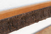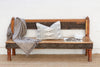 This charming bench is a powerful study in elegant salvage, where architectural history is seamlessly transformed into functional art. This piece is a custom creation, constructed using robust hardwood for the frame and a genuine antique architectural beam fragment repurposed as the backrest and front apron. The original carving, likely a decorative beam from an Indian Haveli , brings a powerful layer of history and texture, contrasting beautifully with the sleek, structural lines of the modern bench base.