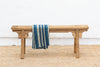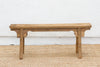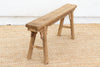 This authentic bench, likely originating from Northern China, is a testament to simple, honest craftsmanship. It features a unique and robust design with distinctive A-stretcher legs that provide a sturdy foundation for its thick top. The original wood, possibly elm, has been beautifully weathered by time, acquiring a rich, rustic patina. The visible age marks and natural wear are not flaws but rather the very essence of its story, making each bench truly unique.