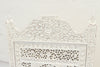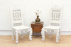 This pair of vintage beautifully carved Anglo Indian chairs will add a touch of exotic elegance with a relaxed, vintage feel to your space. Each chair, measuring 22 inches wide, 21 inches deep, and 44 inches high, showcases intricate hand-carved details across the frame, characteristic of traditional Indian craftsmanship. The chairs feature a later distressed white painted finish, giving them a charmingly aged and bohemian aesthetic. The ornate carvings add a layer of visual texture and artistic interest, making these chairs a unique statement in any room. Perfect as accent chairs in a living room, dining area, or bedroom, this pair combines historical style with a light and airy finish.