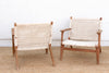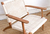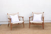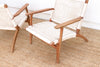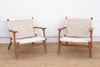 Originally used as lounge or occasional chairs, their versatile form and low stance make them perfect for a living room, sunroom, or reading nook. This pair of wood and woven chairs brings a sense of serenity and refined style to any home.