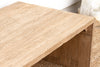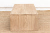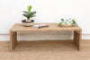 Fashioned from sturdy reclaimed elm wood, this table carries the rich character of its past, with every grain, knot, and imperfection telling its own unique story. The simple yet impactful "waterfall" style construction, where the tabletop seamlessly flows into the legs, is a testament to its modern, minimalist design. The wood has a beautiful, natural, light finish, showcasing its stunning grain and rustic texture. This patina, along with its clean lines and robust form, gives the piece a serene, grounded presence that feels both ancient and utterly contemporary.