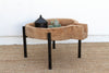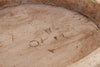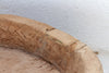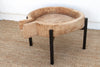 This exceptional dough bowl table is a powerful piece that is both a historical artifact and a modern sculpture. The massive, thick antique wooden bowl, with its deep, worn interior and beautiful, raw patina, is most certainly a Dough Bowl (coupe à pain), once used for kneading bread in a French or Spanish farmhouse in the late 19th century. This large vessel of nourishment and community has been reborn, mounted securely onto a custom, clean-lined modern metal base that provides a striking juxtaposition between the rustic and the industrial. Measuring a substantial 35 inches wide and standing at a perfect 21 inches tall, this one-of-a-kind low coffee table is magnificent for many uses: it can serve as a striking living room centerpiece filled with moss or decorative elements, a rustic-chic low accent table between two chairs, or a unique display surface. The piece is shipped fully mounted and is delivered via white-glove service, ensuring it arrives ready to anchor your space with its beautiful history.